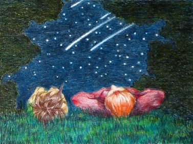 Es half ihm Wasser zu finden und Nahrung. In einer Umgebung, in der er völlig hilflos war, war es sein Beschützer und Führer. Langsam lebte sich der Mensch ein und lernte die Sprache des Waldes zu verstehen, seine Bewohner kennen und unter ihnen zu leben. Manchmal fühlte er sich seltsam beobachtete, das Tier an seiner Seite knurrte leise, aber so oft er sich auch umdrehte, nie ließ sich die unbekannte Bedrohung ausmachen. Auch kamen keine Erinnerungen zurück. Aber der Mensch gewöhnte sich an sein neues, freies Leben und an den nächtlichen Sternenhimmel und stellte sich als gute Neuanschaffung für den Wald heraus. Er tat das, wozu Tiere nicht im Stande waren: Er kümmerte sich. |