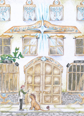 | Der stattliche Bau war nicht zu verfehlen: In leuchtendem Türkisblau erstrahlte die Tafel über dem Eingangstor, die verkündete, dass es sich um eine „Heilanstalt für Nerven, Geist und magische Leiden“ handelte. Als der Reiter den Schriftzug las, wurde ihm doch mulmig zumute. Prüfend blickte er zu seinem tierischen Begleiter, der keinerlei Angst oder Nervosität erkennen ließ. „Na gut, Freund. Dies ist kein Ort für dich – warte hier, bis ich zurück bin.“ Das Tier kratzte sich mit der Hinterpranke am Ohr und erhob sich nicht von seinem Hintern, als sein Schützling durch eine Tür, die Teil des großen Tors war, schlüpfte und im Inneren verschwand. |