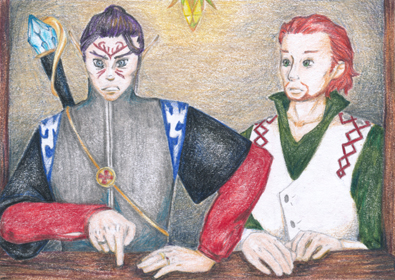 Hinter dem Tor verbarg sich eine Durchfahrt für Wagen, die in den Innenhof führte. . Auf der linken Seite des Bogens war ein Wärterhaus untergebracht, zu dem sich der hoffnungsvoll baldige Patient begab, um sich anzumelden. Sachlich und strukturiert schilderte er erneut dem müde wirkenden Mann seine Geschichte. Er war etwa bis zur Hälfte gekommen, als eine andere Person sich neben ihn drängte und resolut mit der Handfläche auf die Ablage schlug, wie um den Wärter aufzuwecken. Erschrocken zuckte der Reisende zur Seite, denn er hatte den Mann mit langen schwarzen, glatten Haaren, dem kunstvoll tätowierten Muster auf der Stirn und den für Elfen typischen spitzen Ohren nicht bemerkt. Tatsächlich war er schon vor ihm dagewesen und hatte in einer dunkleren Ecke der Durchfahrt ungeduldig seine Kreise gedreht.